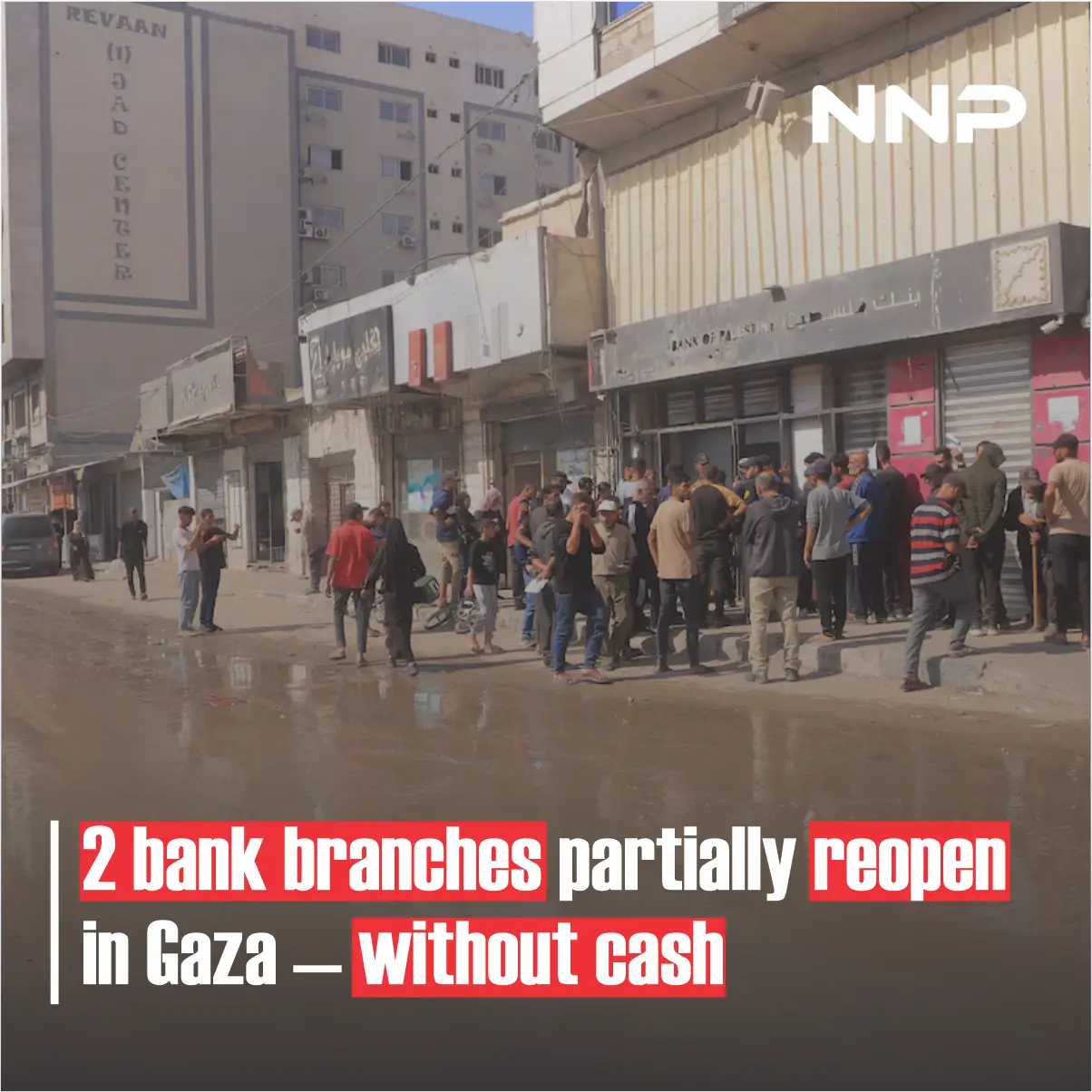 Two commercial bank branches in Gaza have partially reopened, following the cease-fire and initial easing of conflict, yet they are unable to dispense physical cash.