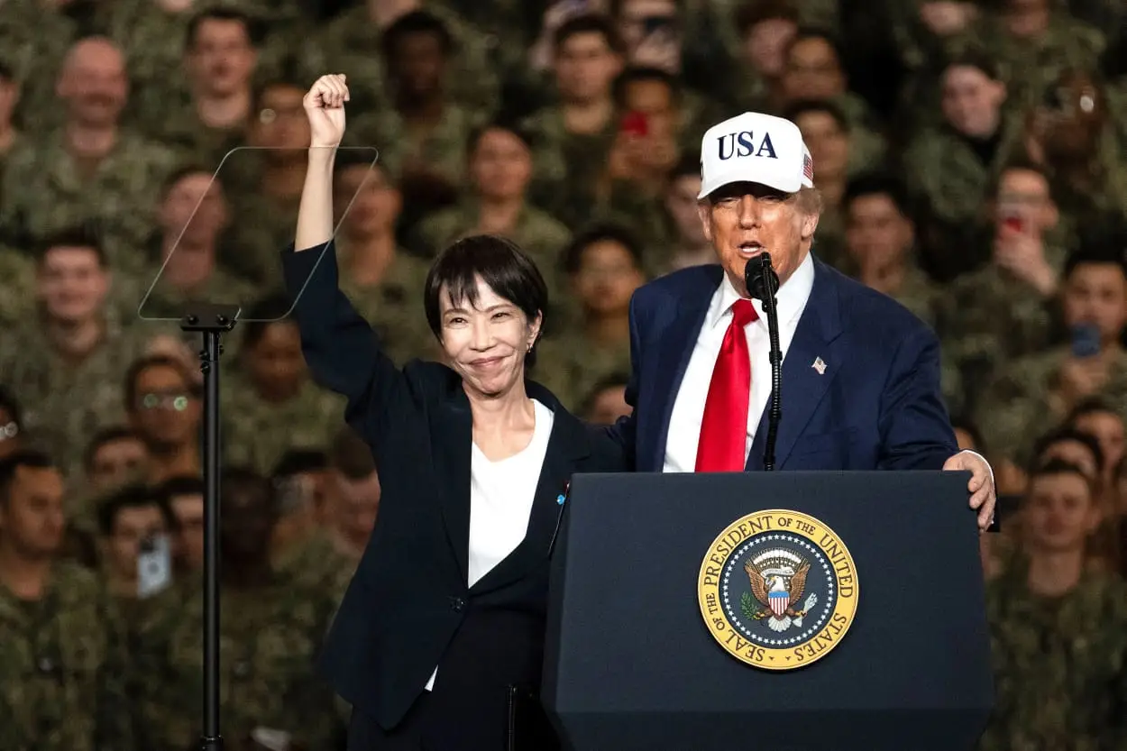 On the deck of the carrier, flanked by servicemen and military hardware, President Trump delivered remarks not only praising the troops but also tying in the broader U.S.-Japan relationship—particularly trade and tariffs. His host that day was Japan’s newly elected Prime Minister Sanae Takaichi, the country’s first woman to hold the post, signifying a new phase in bilateral ties.